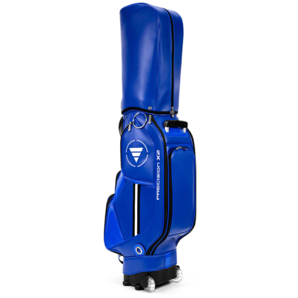 A premium golf cart bag with smooth-rolling wheels and a telescopic handle. The padded 6-way divider top, multiple zip pockets, and durable PU finish keep gear protected and organized for men & women. -