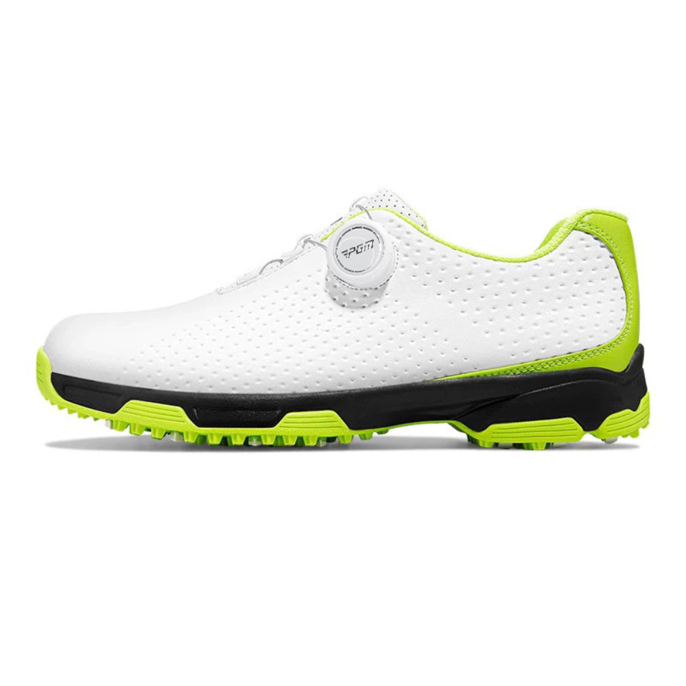 Walk 18 in comfort with these cushioned PGM golf shoes. The quick dial-buckle golf shoes closure locks in a custom fit, while the grippy spikeless golf shoes outsole delivers confident traction tee-to-green. A smooth, wipe-clean waterproof upper keeps you dry, making them ideal mens golf shoes for all-weather rounds and practice. (Also optimized for waterproof golf shoes, lightweight golf shoes, golf shoes for walking, non slip golf shoes, and shoppers who search boa golf shoes—not affiliated.)